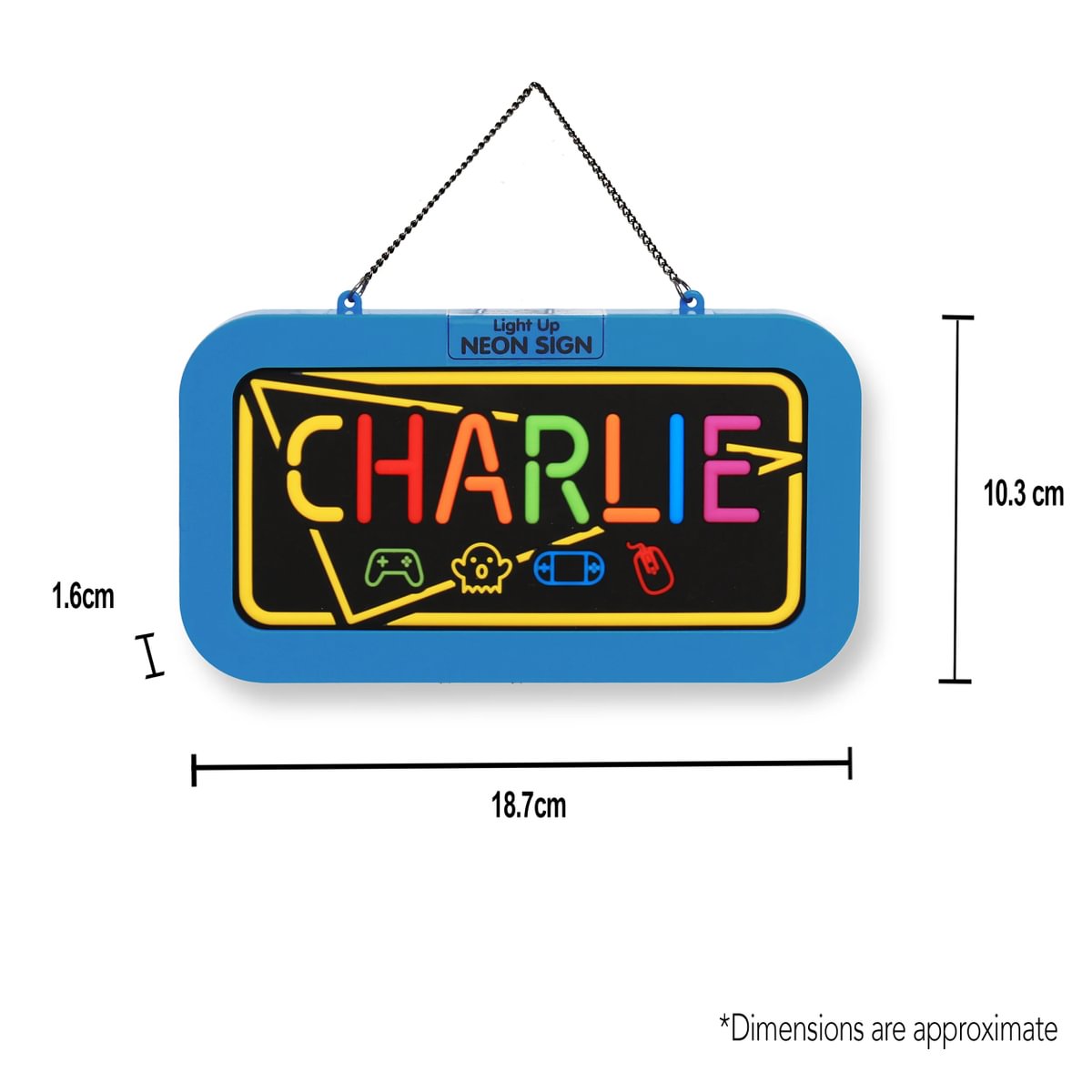 Everyone would like their name up in lights – well now they can with our Pre-personalised Name Neon signs. Super-bright Neon signs featuring popular children’s names. Perfect for either hanging or standing on flat surfaces. With 5 designs to choose from and even blank versions for your to create your own name too. We even provide the batteries!